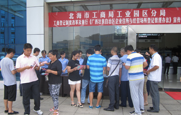 在中國電子北海產(chǎn)業(yè)園宣傳現(xiàn)場,工業(yè)園區(qū)工商分局負責(zé)人表示,“從材料的申請?zhí)峤恢赁k證,承諾為期7個工作日辦好,根據(jù)園區(qū)的優(yōu)質(zhì)企業(yè),特事特辦,急事急辦,材料齊全的即可當(dāng)天頒證。”據(jù)了解,此次政策免去驗資等手續(xù),不但節(jié)約時間,還降低企業(yè)成本。中國電子北海產(chǎn)業(yè)園園區(qū)企業(yè)北海高創(chuàng)電子信息孵化器有限公司領(lǐng)到了新版營業(yè)執(zhí)照,新版由以前的橫版改為豎版,沒有了實收資本一項,并且左下角有一個二維碼,掃描成功后就能看到企業(yè)名稱、法人、注冊時間等登記信息。工作人員表示,“這次工商登記制度改革對于創(chuàng)業(yè)者最大的實惠就是注冊資本由實繳改為認(rèn)繳登記,企業(yè)籌集資金的壓力就小了很多。而且現(xiàn)在辦理執(zhí)照不需要再提供驗資報告等各種材料,只提供場地證明、公司章程就可以申請設(shè)立登記,提交的資料簡化了,手續(xù)自然就簡單便捷了,從人員的招募到辦理登記,節(jié)省了幾個月的時間。”北部灣電子信息科技企業(yè)孵化器的創(chuàng)業(yè)青年者紛紛前來咨詢,工業(yè)園區(qū)工商分局熱情、細致地為咨詢者解惑,同時發(fā)放了申辦宣傳材料,為創(chuàng)業(yè)者們提供專業(yè)、便捷、高效的全方位咨詢服務(wù)。