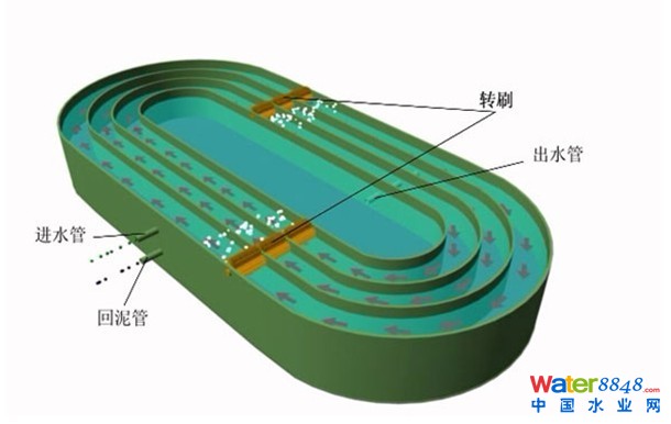 氧化溝又稱“循環(huán)曝氣池”,污水和活性污泥的混合液在環(huán)狀曝氣渠道中循環(huán)流動,是活性污泥法的一種變形。氧化溝根據(jù)形式的不同分為基本式、卡魯塞爾式(Carrousel)、三溝式、奧爾伯式(orbal)和一體化式等多種類型。