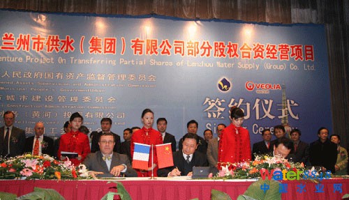 自“十一五”規(guī)劃以來(lái),中國(guó)政府對(duì)水利建設(shè)的投資逐年加大,引得諸多,國(guó)際水務(wù)集團(tuán)注資中國(guó)水務(wù)。使得中國(guó)水務(wù)市場(chǎng)中悄悄刮起了一股外資風(fēng)潮,國(guó)有企業(yè)改制陸續(xù)啟動(dòng),各地政府通過(guò)招商爭(zhēng)奪外資項(xiàng)目空前激烈。以威立雅、中法水務(wù)為代表的“洋水務(wù)”角逐的“香餑餑”。其中威立雅,可以說(shuō)獨(dú)占鰲頭,中國(guó)多半水務(wù)都由其占據(jù)。自1997年,威立雅水務(wù)贏得了在華的第一份合同——天津凌莊水廠改擴(kuò)建與20年特許經(jīng)營(yíng)合同。算來(lái),威立雅水務(wù)已經(jīng)在華17年之久。其在華總共簽署了投資及運(yùn)營(yíng)13個(gè)項(xiàng)目,期中蘭州水務(wù)項(xiàng)目簽署于2007年。