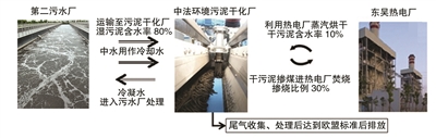 而污水處理廠產(chǎn)生的濕污泥用專用封閉車輛運到中法環(huán)境工廠內(nèi)污泥干化系統(tǒng)進(jìn)料倉。其主要工藝路線是利用東吳熱電廠的蒸汽將含水率80%的濕污泥干化至含水率10%-30%的干污泥;干化后的污泥與煤摻和后送入東吳熱電廠鍋爐內(nèi)焚燒,回收污泥中所含熱能;同時園區(qū)第二污水處理廠的中水和尾水將分別用作干化設(shè)備冷卻水和廠區(qū)保潔、綠化用水,實現(xiàn)資源循環(huán)利用;污泥干化中產(chǎn)生的冷凝水直接排放到鄰近的第二污水處理廠處理。