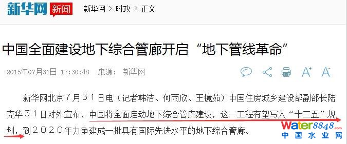 國(guó)務(wù)院部署城市地下綜合管廊建設(shè)打造經(jīng)濟(jì)發(fā)展新動(dòng)力: