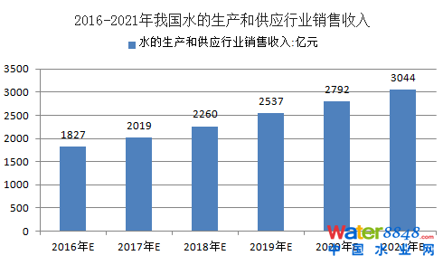 “十三五”期間將是水處理高峰期,2015年是新環(huán)保法實(shí)施的一年,最嚴(yán)格環(huán)保法的推出將使得執(zhí)法不嚴(yán)的現(xiàn)象得到糾偏。此外,2015年是“水十條”落地并全面執(zhí)行的第一年,行業(yè)發(fā)展進(jìn)入加速期,水治理行業(yè)景氣度進(jìn)入高峰期。預(yù)計(jì)到2021年,我國水的生產(chǎn)和供應(yīng)行業(yè)銷售收入將超過3000億元。