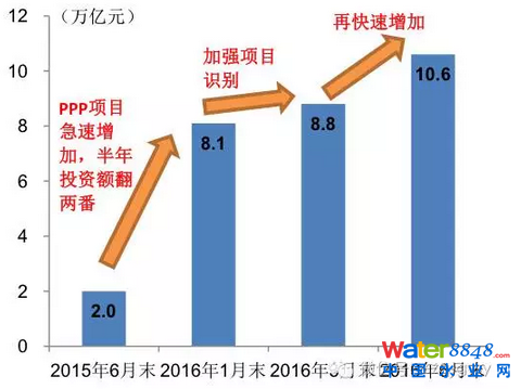 2015年初,市場(chǎng)對(duì)PPP的認(rèn)知仍停留在想象階段,2015年底,PPP模式已開(kāi)始變得更為實(shí)際。從2015年6月到2016年3月,我國(guó)PPP項(xiàng)目庫(kù)中項(xiàng)目投資額大幅增加,半年時(shí)間達(dá)到8萬(wàn)億規(guī)模,截至2016年3月末,全國(guó)PPP綜合信息平臺(tái)項(xiàng)目庫(kù)入庫(kù)項(xiàng)目7721個(gè),總投資8.8萬(wàn)億元。截至2016年6月末,全部入庫(kù)項(xiàng)目9285個(gè),總投資10.6萬(wàn)億元;以執(zhí)行階段項(xiàng)目數(shù)與準(zhǔn)備、采購(gòu)、執(zhí)行等3個(gè)階段項(xiàng)目數(shù)總和的比值計(jì),入庫(kù)項(xiàng)目的落地率為23.8%,比3月末落地率再高出2個(gè)百分點(diǎn)。其中,財(cái)政部示范項(xiàng)目232個(gè),總投資額8025.4億元,處于執(zhí)行階段項(xiàng)目3078億元,落地率達(dá)48.4%,比3月末的35.1%增長(zhǎng)13.3個(gè)百分點(diǎn),正加速落地。PPP大時(shí)代已經(jīng)到來(lái)。