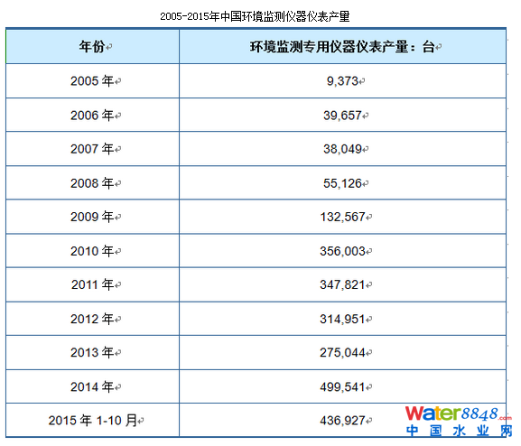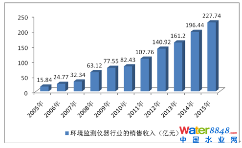 2005-2015年中國(guó)環(huán)境監(jiān)測(cè)儀器行業(yè)的銷售收入情況
