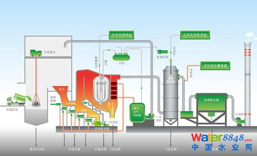 爐排爐焚燒生活垃圾,啟動(dòng)時(shí)可以以油為輔助燃料,進(jìn)料垃圾不需要預(yù)處理;