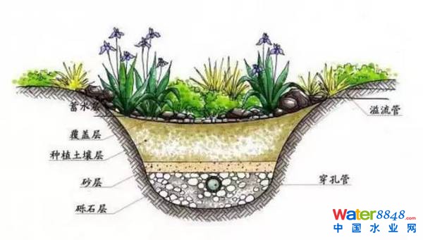 ?雨水花園做為低影響開(kāi)發(fā)最為常見(jiàn)的設(shè)計(jì)手段,如今已延展出了多種形式。狹義的雨水花園僅為規(guī)模有限、結(jié)構(gòu)簡(jiǎn)單的淺凹綠地,適用于小區(qū)或私宅綠化。
