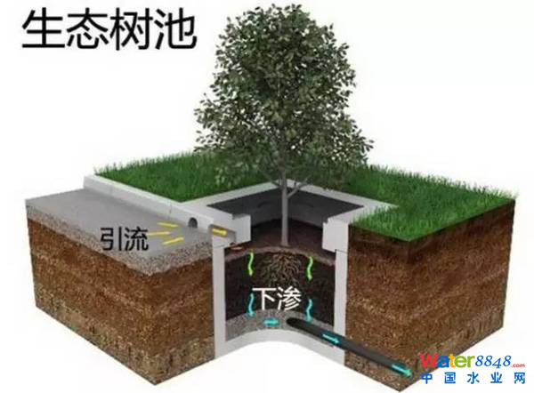 ?在對(duì)于通行或樹(shù)蔭要求較高的區(qū)域可將單個(gè)的樹(shù)池作為一個(gè)生態(tài)滯留單位。