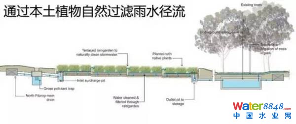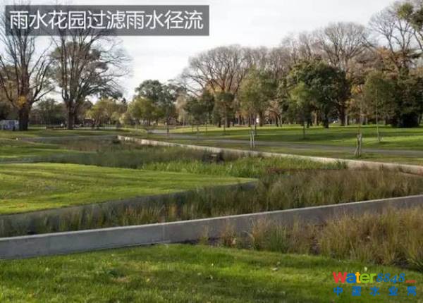 ?而廣義的雨水花園則可囊括具有調(diào)蓄和凈化雨水徑流能力的下沉式綠化設(shè)施。如下圖中的墨爾本愛(ài)丁堡雨水花園,在調(diào)蓄的同時(shí)運(yùn)用生物凈化手段對(duì)徑流進(jìn)行階梯式處理,為其所在公園提供了大量灌溉水。