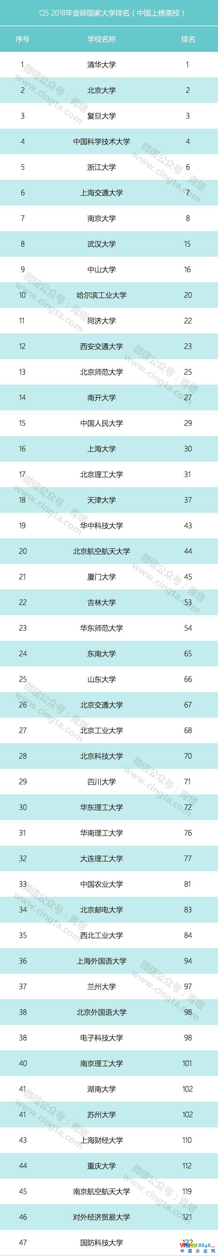 2017年11月22日,QS全球教育集團(tuán)發(fā)布了QS 2018金磚國家大學(xué)排名,排名旨在深入分析世界新興經(jīng)濟(jì)體教育的全球競爭力,其中94所中國大學(xué)進(jìn)入金磚國家前300名,而且前十名中有7所中國高校。