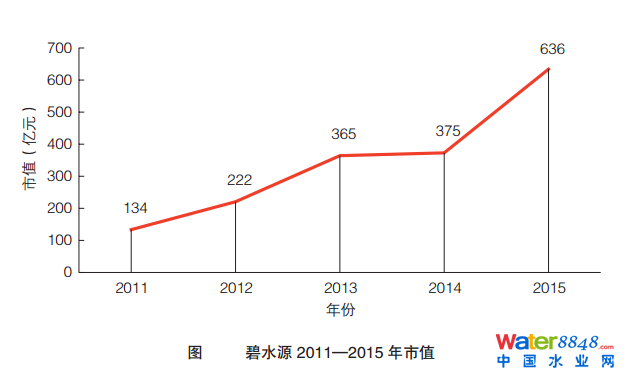 2007年,針對(duì)環(huán)保領(lǐng)域政府控制市場(chǎng)、行業(yè)壟斷、民營(yíng)企業(yè)創(chuàng)新技術(shù)推動(dòng)困難的現(xiàn)象,碧水源提出走“公私合營(yíng)”的發(fā)展模式,實(shí)現(xiàn)政府和企業(yè)雙贏:政府贏在主導(dǎo)和監(jiān)管(占股51%),贏在GDP,贏在就業(yè),贏在稅收;碧水源(占股 49%)贏在運(yùn)營(yíng)管理合資企業(yè),贏在創(chuàng)新技術(shù)有了用武之地。這一模式在全國(guó)逐漸形成星火燎原的態(tài)勢(shì)。截至2016年,作為環(huán)保領(lǐng)域最早試水PPP 模式的環(huán)保企業(yè),碧水源與全國(guó)30多個(gè)省市的國(guó)有水務(wù)公司組建了逾100 余家PPP合資企業(yè)。2015年5月,碧水源與云南城投合資成立的云南水務(wù)在香港成功上市,成為中國(guó)第一家PPP模式上市公司。PPP模式的不斷深化推廣也不斷推動(dòng)碧水源的膜技術(shù)進(jìn)入了新區(qū)域與新水務(wù)市場(chǎng),大大增加了市場(chǎng)份額,公司發(fā)展駛?cè)?ldquo;快車(chē)道”。