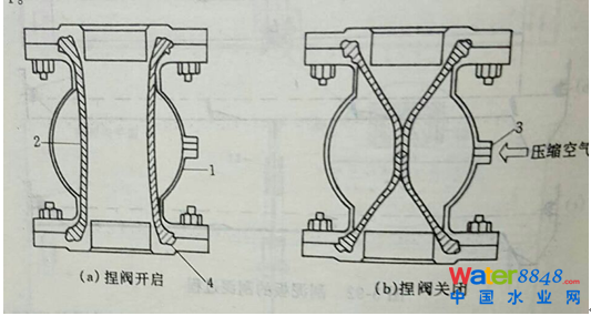 又如,污泥閘門采用 “捏閥,此閥沒有 “” !是在鋼套內(nèi)設(shè)一橡膠軟管,當(dāng)壓縮空氣進入橡膠軟管與鋼套之間時,用高壓空氣 “” 癟軟管,污泥就斷流了;如一放氣,污泥就通?出流!是個絕妙的設(shè)計。