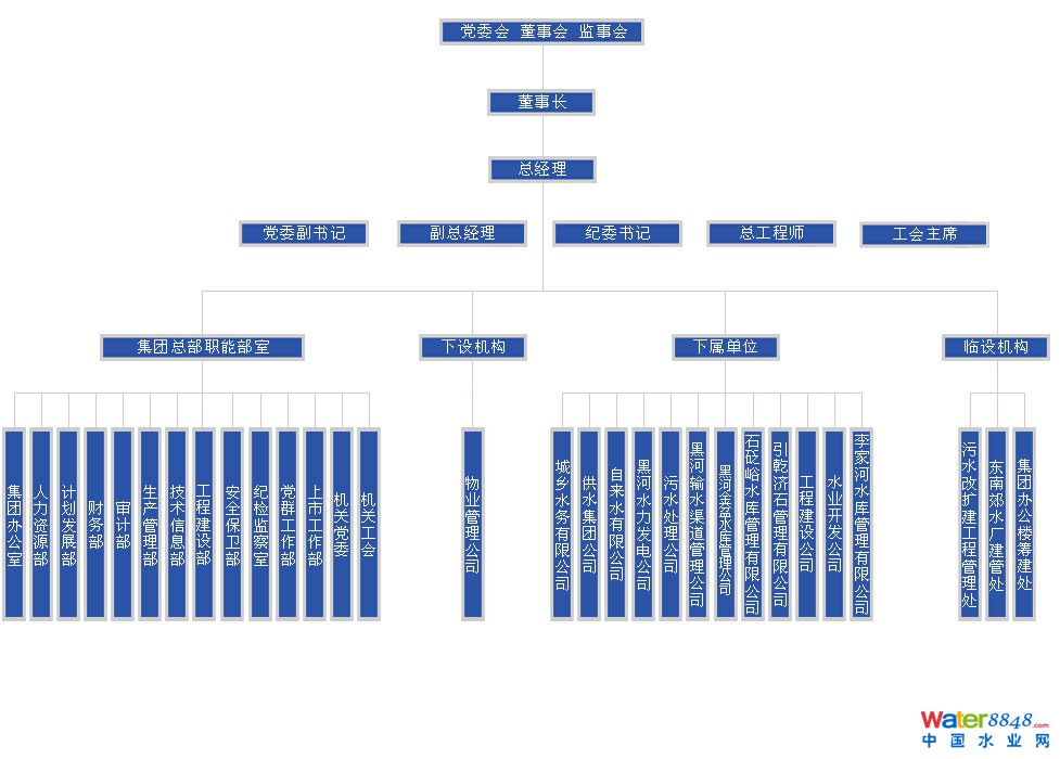 西安水務(wù)(集團)有限責(zé)任公司是在原西安市城投集團控股的西安市供水集團有限公司、西安市水業(yè)運營公司、西安市污水處理有限責(zé)任公司,西安黑河供水有限責(zé)任公司及西安市黑河引水渠道管理處、黑河庫區(qū)管理中心,市水務(wù)局所屬引乾濟石調(diào)水工程管理中心,長安區(qū)石砭峪水庫管理站等八家單位的基礎(chǔ)上進行整合組建而成的。