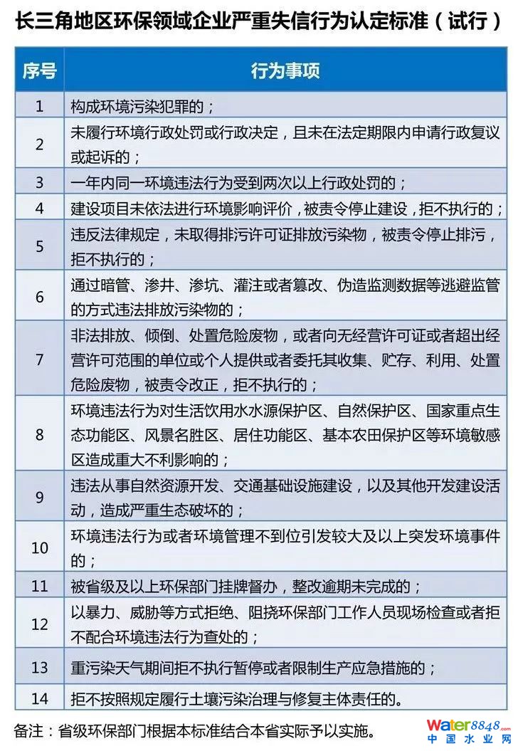 為全面提升長三角地區(qū)環(huán)保領(lǐng)域信用管理水平,營造“失信者處處受制,守信者處處受益”的區(qū)域信用發(fā)展環(huán)境,三省一市信用辦及環(huán)保部門于6月1日長三角地區(qū)主要領(lǐng)導(dǎo)座談會期間簽署了《長三角地區(qū)環(huán)境保護(hù)領(lǐng)域?qū)嵤┬庞寐?lián)合獎懲合作備忘錄》,明確環(huán)保領(lǐng)域區(qū)域信用合作內(nèi)容,建立完善區(qū)域信用合作機(jī)制,發(fā)布首個區(qū)域嚴(yán)重失信行為認(rèn)定標(biāo)準(zhǔn)、聯(lián)合懲戒措施。