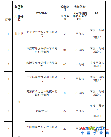 山東省環(huán)評(píng)機(jī)構(gòu)環(huán)評(píng)文件季度質(zhì)量考核