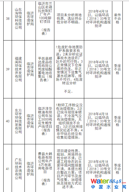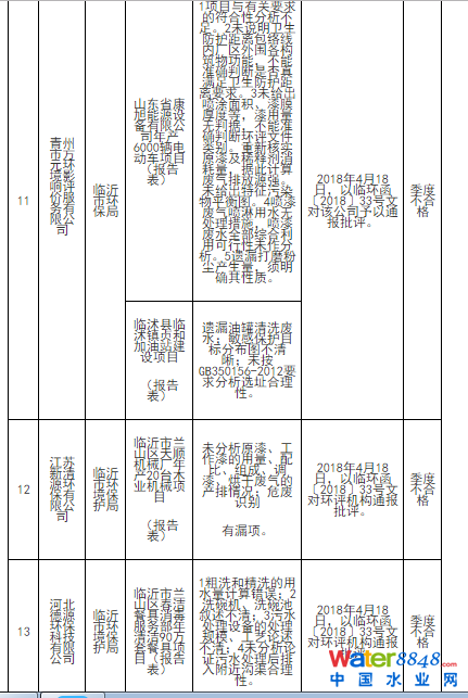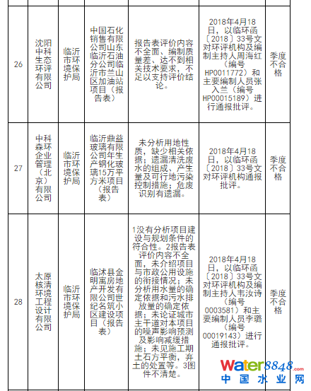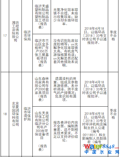 山東通報(bào)2018年第一季度環(huán)評(píng)機(jī)構(gòu)文件質(zhì)量考核情況