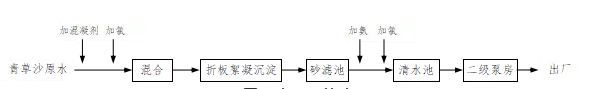 二氧化碳生產(chǎn)性試驗(yàn)在上海南匯自來水有限公司下屬的惠南水廠和航頭水廠進(jìn)行,兩個水廠的原水均來自青草沙水庫,設(shè)計日供水量分別為44×104m3/d和24×10m3/d,采用常規(guī)制水工藝,混凝劑為聚氯化鋁(PAC)工藝流程如圖1所示。