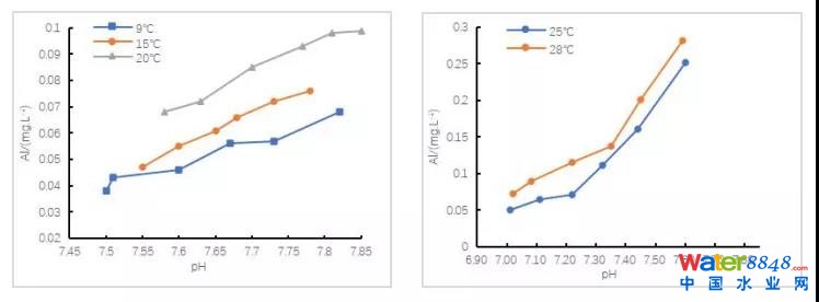 2.1.1 原水pH、水溫對鋁指標(biāo)的影響