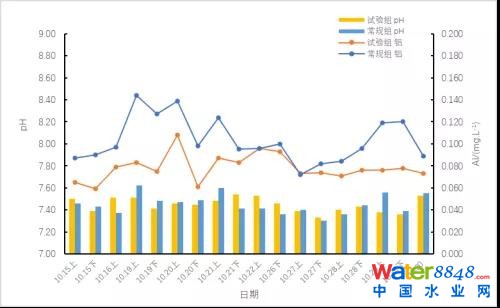 9 加二氧化碳試驗(yàn)組與加酸組濾后水質(zhì)總鋁量對比