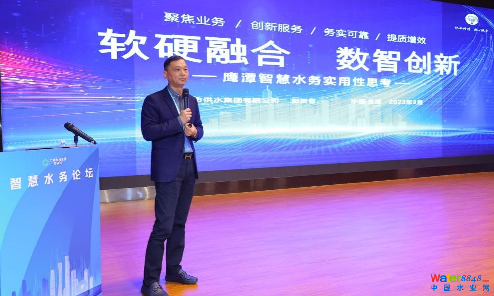 鷹潭市供水集團總經(jīng)理彭靈有作《軟硬融合 數(shù)智創(chuàng)新-鷹潭智慧水務(wù)實用性思考》主題演講 通訊員供圖