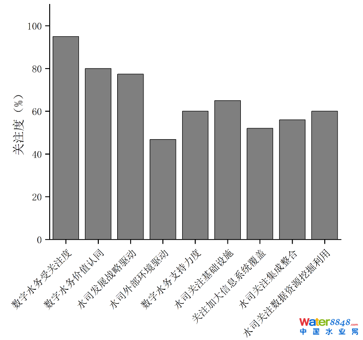 在2017—2020年,在中國城鎮(zhèn)供水排水協(xié)會(huì)的帶領(lǐng)下,珠海卓邦科技有限公司對全國1000多家代表性水務(wù)企業(yè)開展了智慧水務(wù)建設(shè)調(diào)研。其中,95%以上的水務(wù)企業(yè)正在密切關(guān)注智慧水務(wù)的行業(yè)動(dòng)態(tài),越來越多的數(shù)字化領(lǐng)先水務(wù)企業(yè)都在啟動(dòng)頂層設(shè)計(jì)工作;80%以上的水務(wù)企業(yè)認(rèn)同智慧水務(wù)在提升效率、管理增效、提升企業(yè)形象、保障安全等方面的價(jià)值;77.4%的水務(wù)企業(yè)發(fā)展智慧水務(wù)的動(dòng)力來源于公司內(nèi)部的發(fā)展戰(zhàn)略需求,46.8%的水務(wù)企業(yè)則來自于外部環(huán)境的推動(dòng);60%以上的企業(yè)表示高管對于智慧水務(wù)支持力度極大,包括組織、資金、政策、人員支持等方面;在智慧水務(wù)發(fā)展的過程中,65%的水務(wù)企業(yè)關(guān)注基礎(chǔ)設(shè)施的建設(shè),52%的水務(wù)企業(yè)關(guān)注信息系統(tǒng)覆蓋范圍的拓展,56%的水務(wù)企業(yè)關(guān)注集成整合,60%以上的水務(wù)企業(yè)關(guān)注數(shù)據(jù)資源的挖掘利用 。