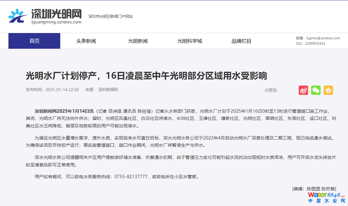 智慧水務賦能 光明水廠高效完成管道碰口_深圳新聞網(wǎng)
