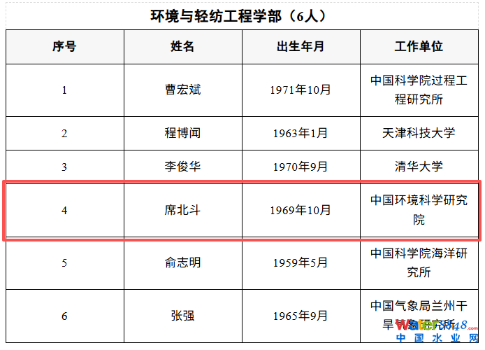 2025年兩院院士增選結(jié)果公布,席北斗當(dāng)選中國工程院院士 生態(tài)環(huán)境系統(tǒng)中,中國環(huán)境科學(xué)研究院院長席北斗當(dāng)選中國工程院院士。