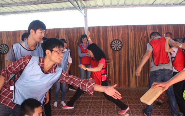 參加人員被隨機(jī)分為三支隊(duì)伍,各隊(duì)經(jīng)過團(tuán)隊(duì)風(fēng)采展示及熱身小游戲互動(dòng)后,初步形成熱烈的氛圍,為接下來的“破冰啟航”、“冰海沉船”、“七巧板”、“真人CS對戰(zhàn)”四個(gè)拓展項(xiàng)目做準(zhǔn)備。在各自隊(duì)長的帶領(lǐng)下,每一位隊(duì)員都積極發(fā)揮才智,不斷總結(jié)經(jīng)驗(yàn),最終找到了走向成功的方法,完成了任務(wù),從中實(shí)現(xiàn)自我突破,增強(qiáng)自信心與勇氣。培訓(xùn)結(jié)束前,各隊(duì)分別總結(jié)了培訓(xùn)體會,與大家分享了團(tuán)隊(duì)建設(shè)經(jīng)驗(yàn)。