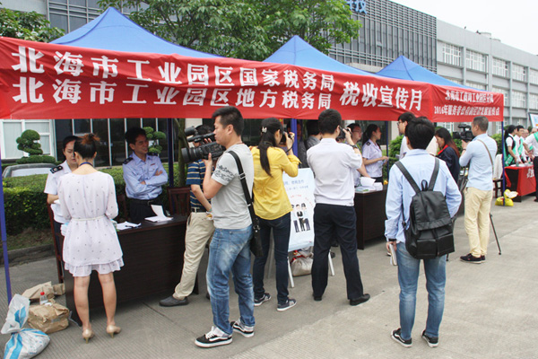 2016年4月19日,北海市工業(yè)園區(qū)國稅局、地稅局、工商局工業(yè)園區(qū)分局、農(nóng)業(yè)銀行北海分行走進(jìn)北海工業(yè)園區(qū),在中國電子北海產(chǎn)業(yè)園現(xiàn)場(chǎng)為企業(yè)宣講營改增、解讀稅收優(yōu)惠政策、服務(wù)非公有制經(jīng)濟(jì)發(fā)展及金融服務(wù)。