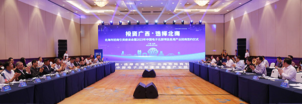 2023年4月14日下午,“投資廣西 選擇北?!睘橹黝}的北海市招商引資座談會(huì)暨2023年中國(guó)電子北部灣信息港產(chǎn)業(yè)招商簽約儀式成功舉辦。在北海市委書記蔡錦軍,市委常委、常務(wù)副市長(zhǎng)譚秀洪,市委常委、秘書長(zhǎng)鄭定雄,經(jīng)開(kāi)區(qū)管委會(huì)主任劉忠廣,中國(guó)電子北海產(chǎn)業(yè)園公司執(zhí)行董事徐俊男,長(zhǎng)江商學(xué)院老師徐汀、長(zhǎng)江商學(xué)院老師許耀公的見(jiàn)證下,完成了8個(gè)項(xiàng)目簽約,涉及高端信息服務(wù)、生物醫(yī)療、供應(yīng)鏈、投融資等領(lǐng)域建立戰(zhàn)略合作關(guān)系,共助北海產(chǎn)業(yè)高質(zhì)量發(fā)展。