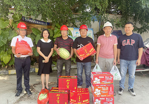 2023年7月19日下午,園區(qū)項(xiàng)目中電春海湖、中電海灣國(guó)際建設(shè)現(xiàn)場(chǎng)烈日炎炎,受集團(tuán)公司領(lǐng)導(dǎo)的委托,中國(guó)電子北海產(chǎn)業(yè)園公司副總經(jīng)理劉曉娟到項(xiàng)目建設(shè)現(xiàn)場(chǎng),為高溫天氣下堅(jiān)守在一線(xiàn)的工作者送去了清涼和慰問(wèn),囑咐大家在高溫天氣下工作要做好防暑降溫措施,合理安排工作時(shí)間。